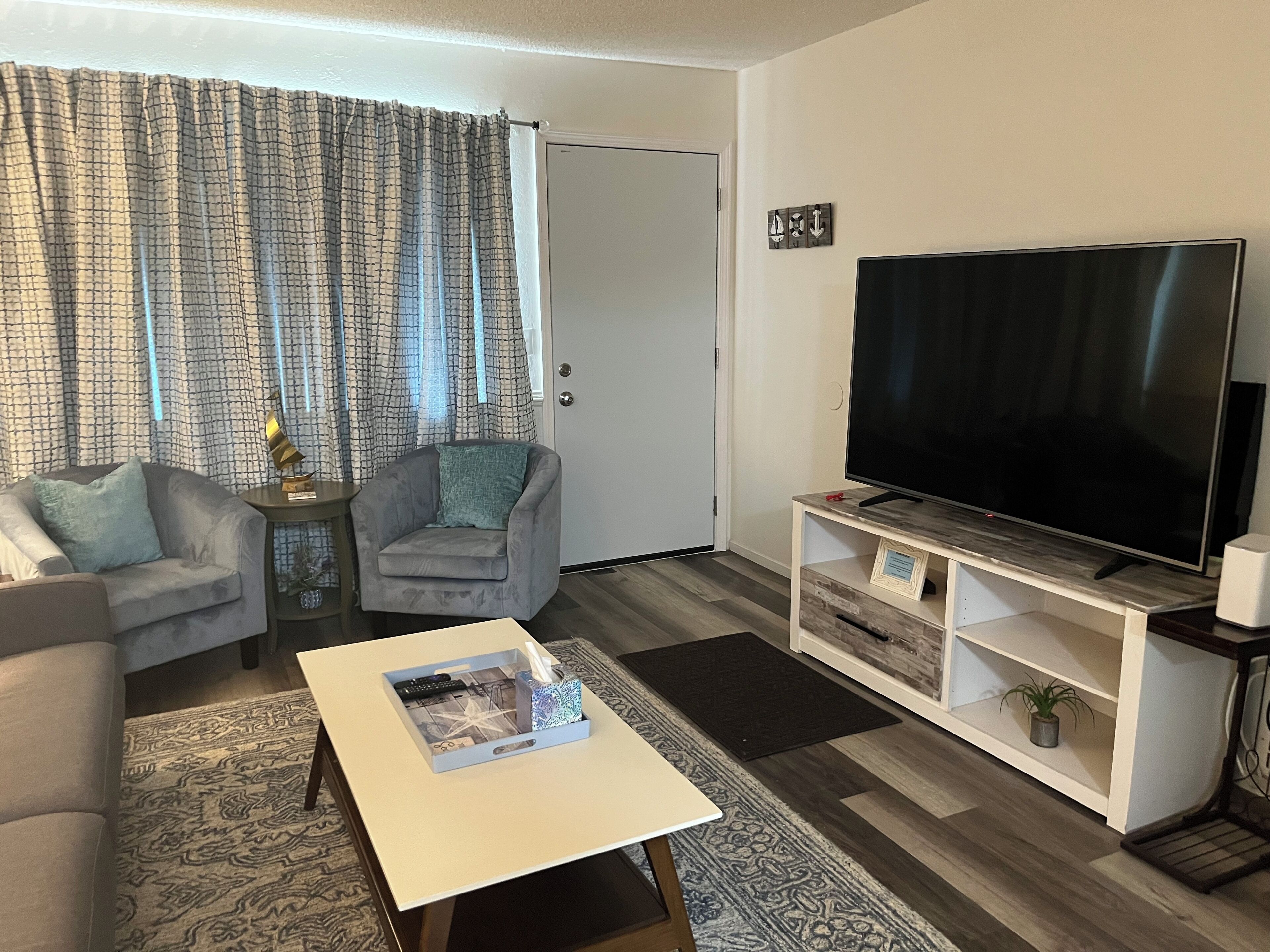 Our home offers a spacious, open kitchen with everything you need to eat at home and an attached dining area. We also have a spacious living room with a built-in fireplace and SMART TV and a laundry room with a washer and dryer, making it convenient.