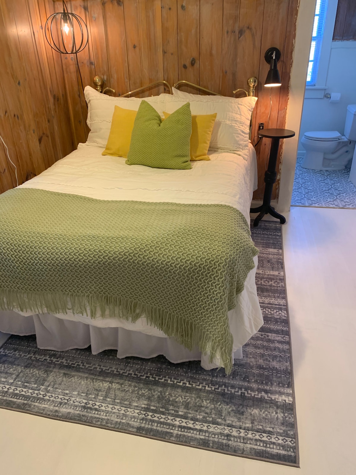 The room offers a full kitchen, a queen size bed, a fenced in yard with an outdoor seating area with firepit. The private 6 acre property is secluded in an established neighborhood just 5 miles west of downtown Salisbury.