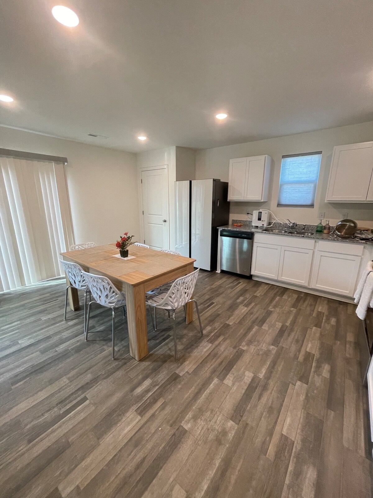 Nice, peaceful extremely clean renovated town-home. Less than 5 min. from uptown, can walk to restaurants on Main St., easy interstate access. Amenities galore! Fully-stocked kitchen w/ granite counter tops & shaker cabinets. SPACIOUS: Living, Dining, Baths, walk-in closets, 1 King & 1 Queen BDR w/ Ceiling Fans. Good central HVAC. Two home offices- desk lights & charging stations. Large Laundry Room w/ full-size W&D & folding table. Enclosed outdoor patio for restful after work hours.