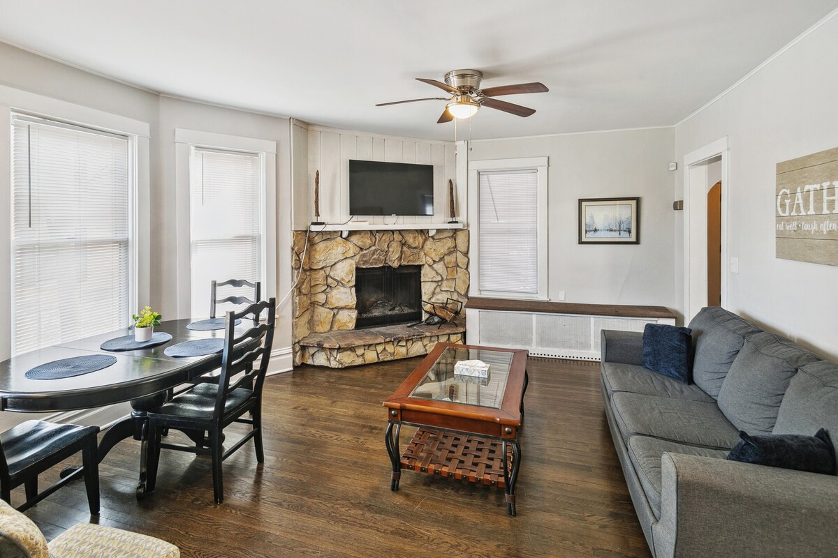 Comfy 2-bedroom apartment walking distance to downtown Libertyville. Parking for 2 Cars. Comfortably sleeps 6.
