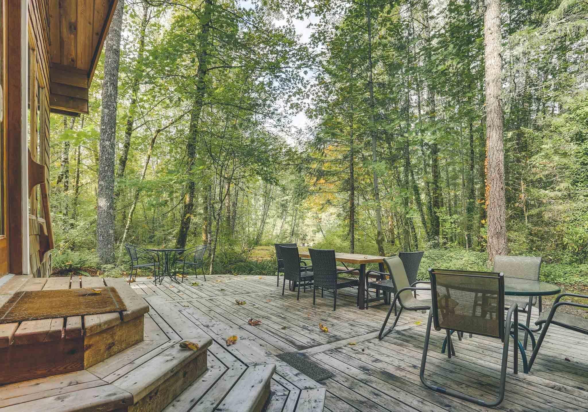 • Wraparound deck and forest views through floor-to-ceiling windows