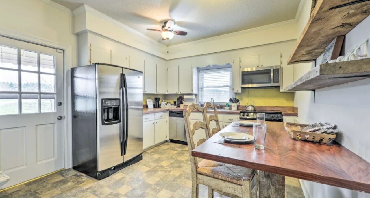 Our home has two spacious bedrooms, a modern full bath and half bath, fully stocked kitchen, comfortable living room seating and cozy dining area. The front porch offers beautiful views of the farm, breathtaking sunrises, and idyllic sunsets while you sip some coffee from our coffee station and enjoy a book from the borrow library. Housekeeping and meals will be the responsibility of the guests.