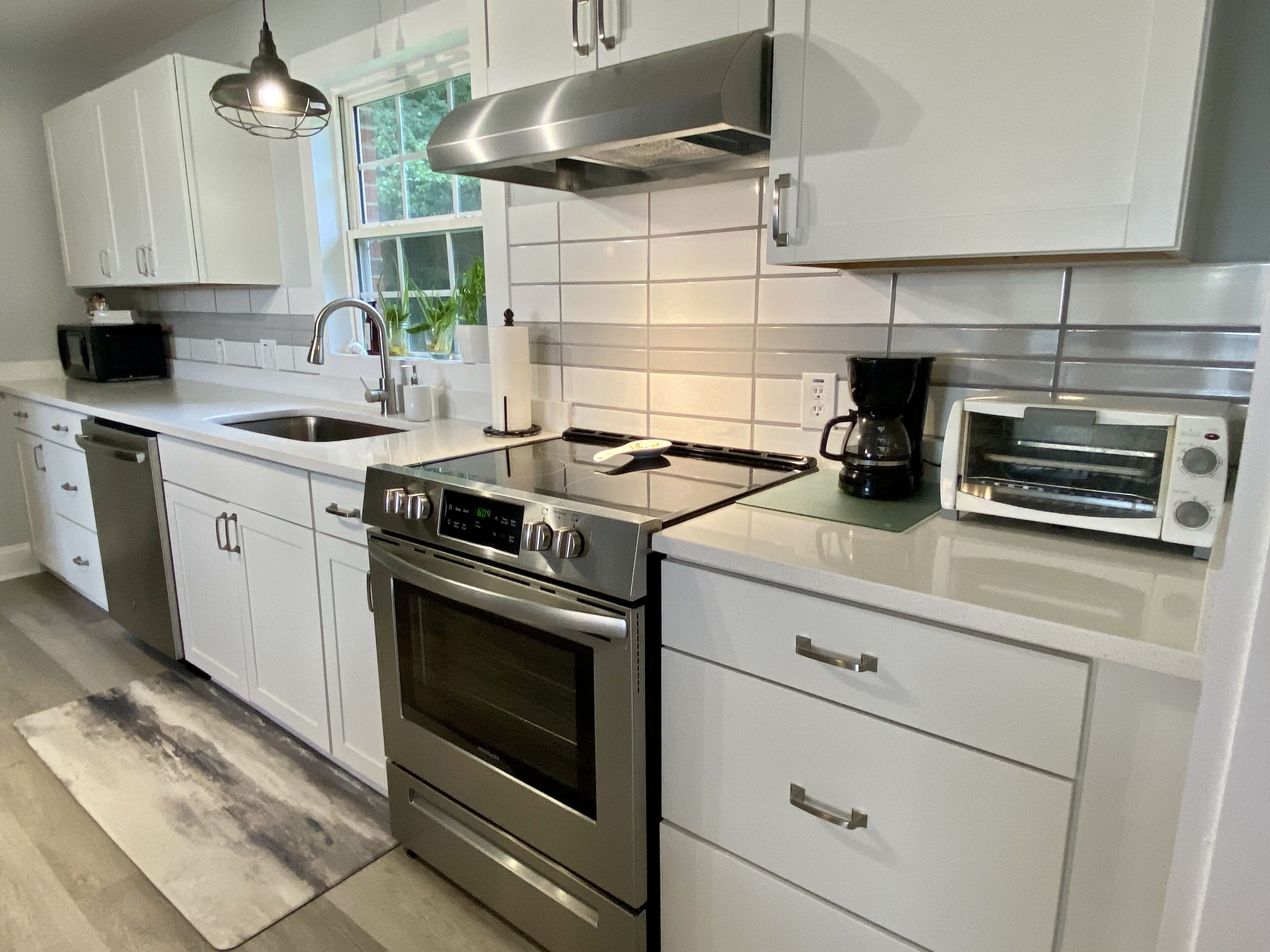 The well-equipped kitchen has everything you need to make delicious dishes including a number of new ss appliances, a nice gas stove and oven, two coffee makers, toaster, kettle, blender and plenty of kitchen cabinets. Plentiful pots, pans, utensils and more!