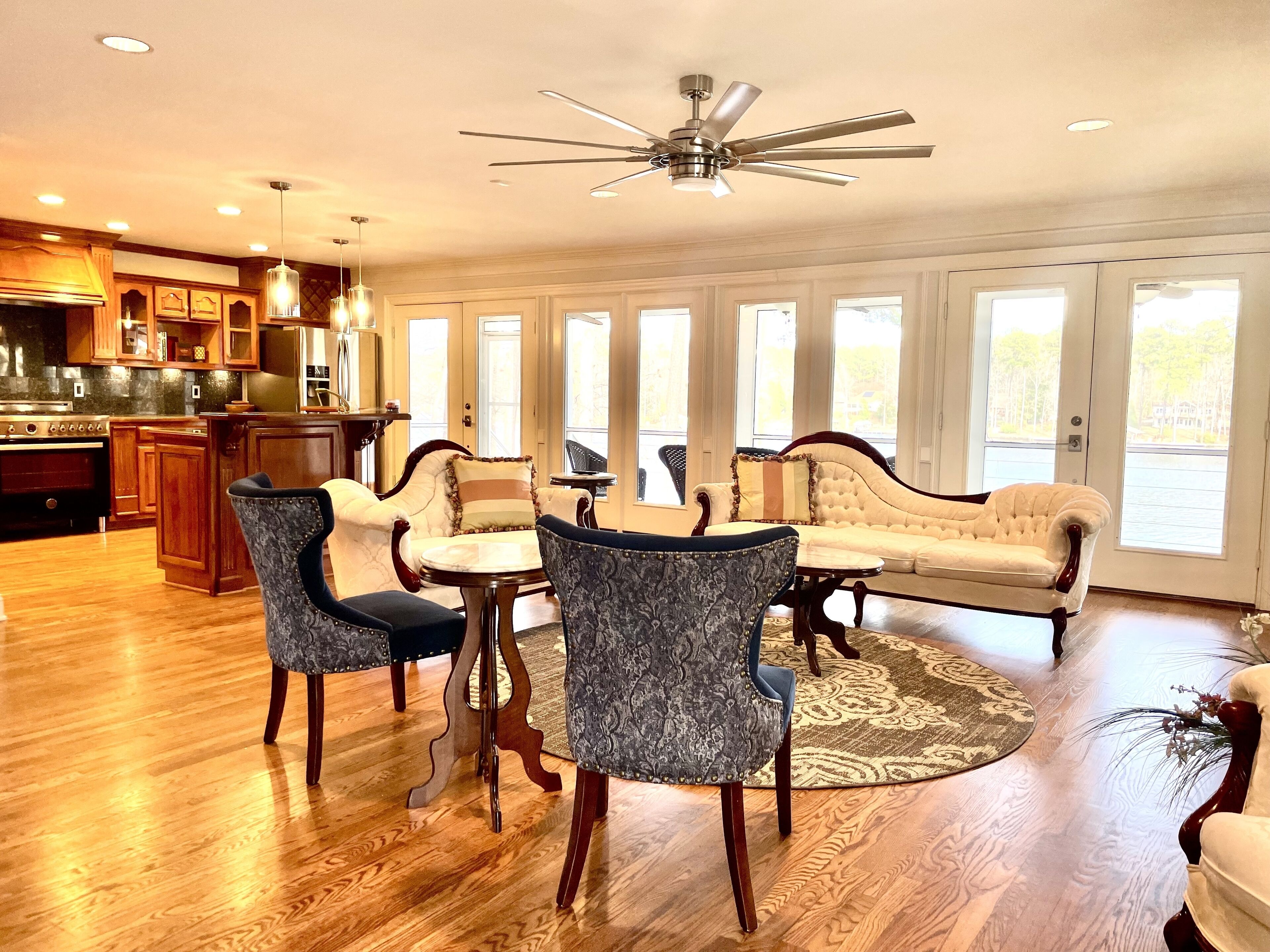 Our home can accommodate up to 8 guests. We encourage catch and release fishing from our ponds. And conversations overlooking the water while sitting near the fire pit at night is therapeutic. We look forward to meeting you!