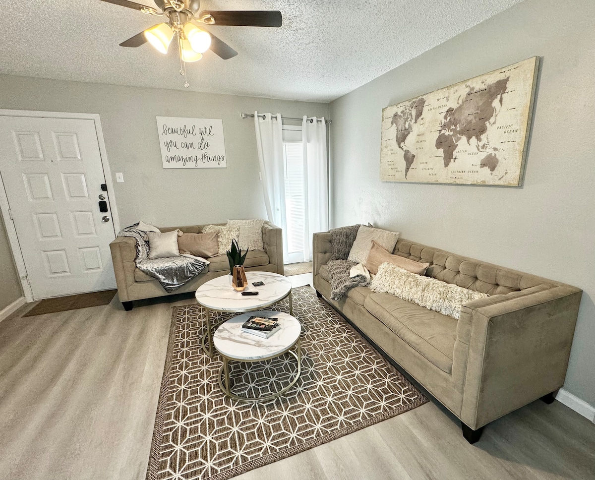 - "The rental is very modern, kept up with nicely/clean, and very accommodating. Checking in was very easy." - "Property is beautiful! The amenities provided are the best. Everything is nice & comfortable with beautiful decor. It’s close to my relatives, restaurants with plenty to do. We had a great time & definitely plan on staying here as often as we can in the future. The host was great communicating with the easier checkin & checkout. We would rate it 10 stars!!"