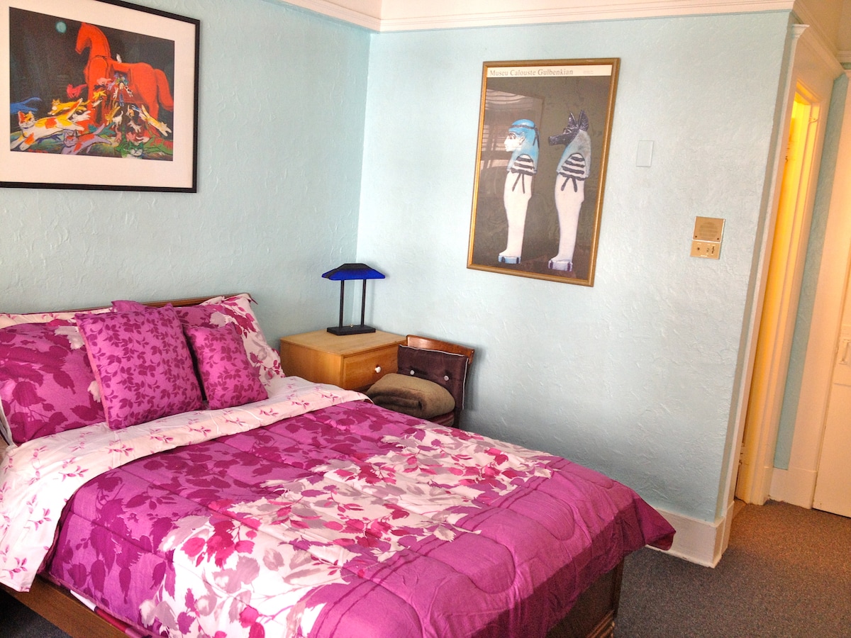 Emperor Norton Inn, a residential hotel conveniently located in downtown San Francisco, 2 blocks to Union Square, cable car stops, shopping mall, department stores, cafes and restaurants. This is apt#2, private room with private bathroom. Noisier facing the street, but bigger & brighter than other apts in the building.