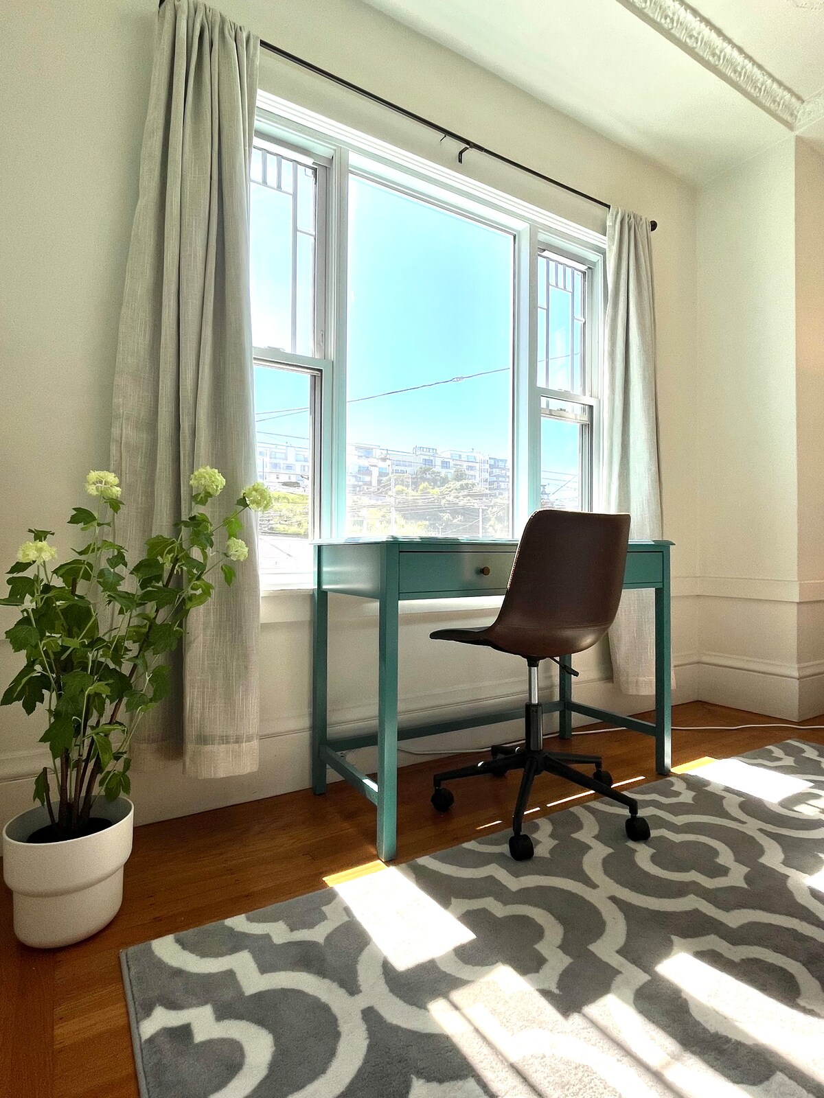 Best location close to everything - walk to restaurants, bars, shops like Laurel Shopping and the Fillmore st. Kaiser, UCSFs are walking distance. Quiet neighborhood with parks nearby. Beautiful high ceillings everywhere with old San Francisco charm. Quiet semi-private courtyard, private washer & dryer, newer furniture in roomy, comfortable and stylish rooms.