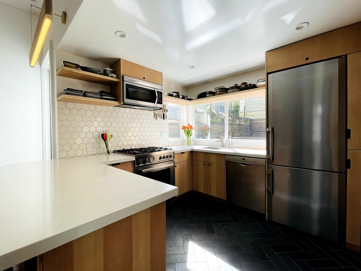 ✨ Welcome to a timeless haven nestled on the sunny side of San Francisco’s iconic fog line. This home beautifully blends classic elegance with modern comfort, featuring high ceilings, preserved architectural details, and a serene backyard oasis 🌿. Ideal for discerning travelers—whether friends, coworkers, families or couples—this space invites you to unwind and savor every moment of your stay.