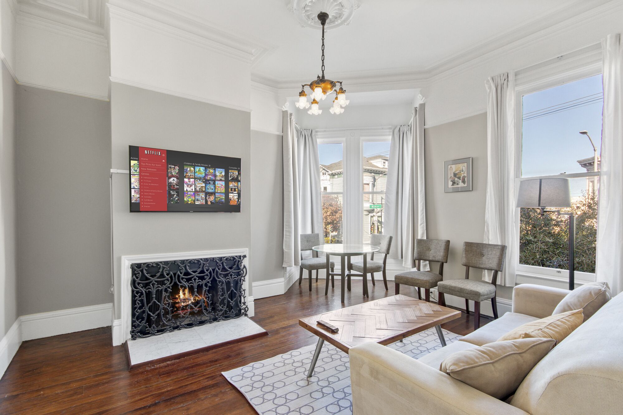 Days outside the can be spent around some of the best shopping and finest restaurants in the city. If you’ll be driving, parking is included, which is another big bonus, however any and everything you could need is accessible on foot or by public transportation. Nearby Alta Plaza park offers a playground, tennis courts and a grand staircase that leads to panoramic views of the city, and Lafayette Park and Raymond Kimbell Playground are similarly outfit. Twenty minutes on foot brings you to the Presidio, former US military fort that now is a massive park and natural area full of works of art, sports fields, a golf course, trails, and more. And at the northern tip of the Presidio, you may have heard of the Golden Gate Bridge. In the opposite direction of the Lower Pacific Heights, you have Chinatown, the Financial District, AT&T Park, Pier 39 and the Embarcadero, and so much to see and do that you’ll never run out of culture, fun, and food in this refined and classic Victorian executive rental
