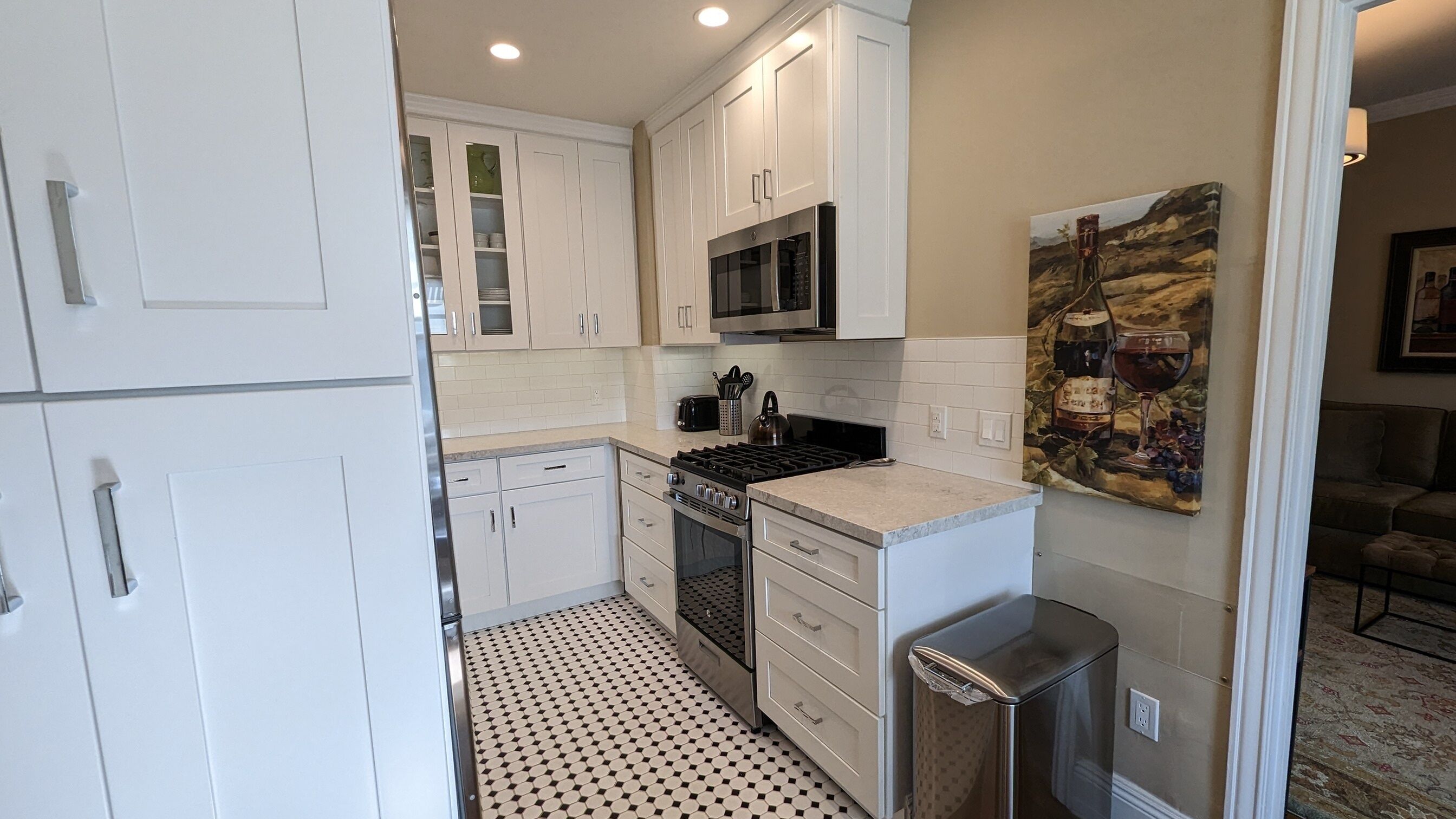 Our home has a fully stocked kitchen with gas range, dishwasher, garbage disposal and Caesarstone counters. There is strong WiFi and streaming services on the 4K TV.