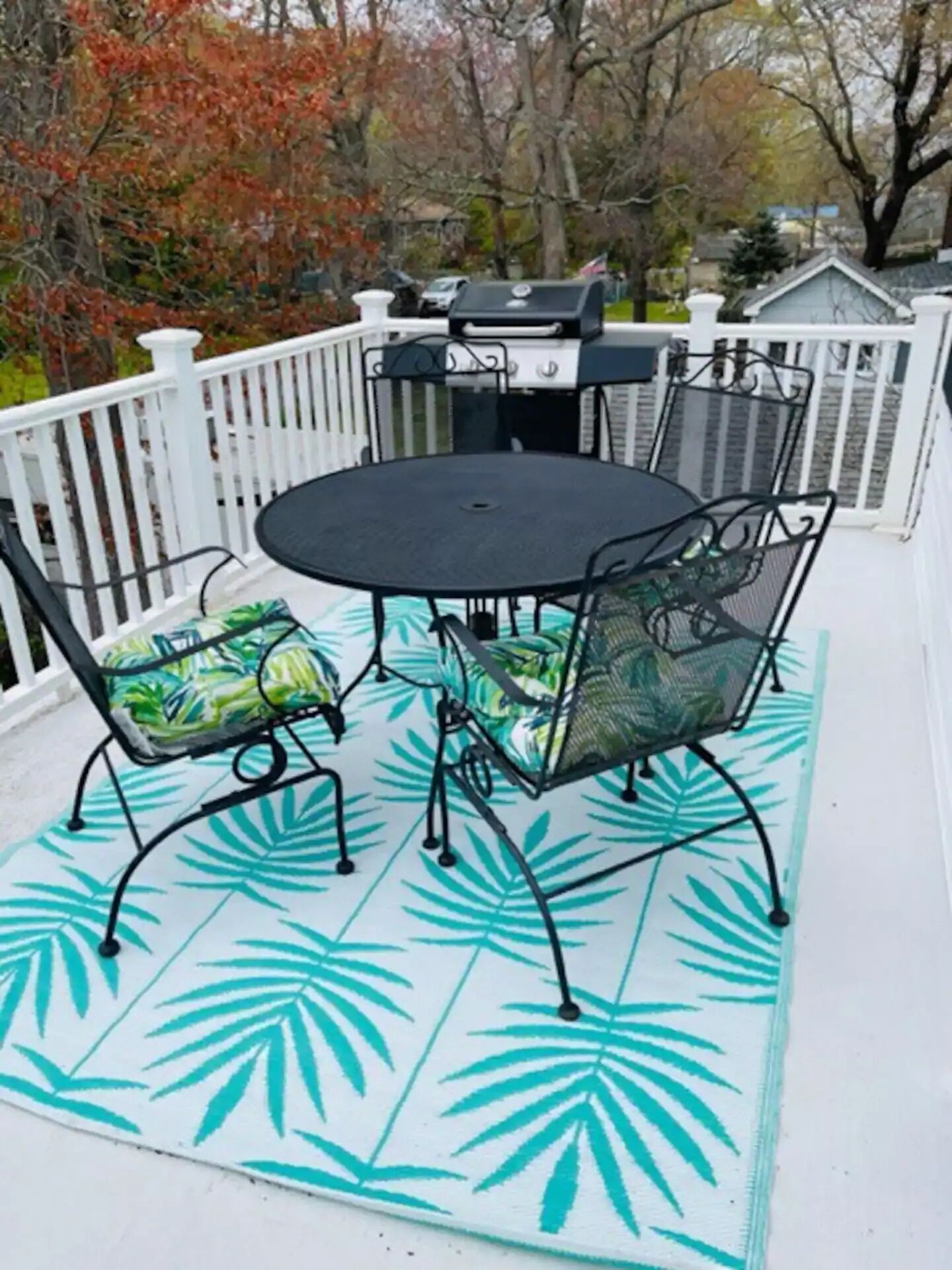 Feel the gentle bay breeze as you unwind in our outdoor seating area. Here, you'll find a covered patio area, perfect for savoring morning coffee or evening cocktails. The deck box has some beach chairs and outdoor games for you to enjoy.