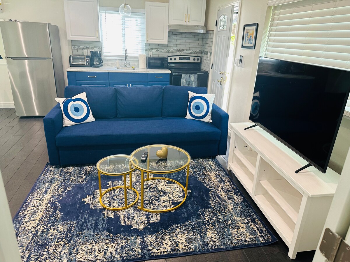 This Den is small but is furnished for maximum comfort & to promote wellness & relaxation! You'll have a smart TV, a private patio, complimentary beach towels, yoga mats, & a picnic blanket for outings, and also access to the entire backyard with several more seating areas (shared spaces) to enjoy SoCal's beautiful weather.