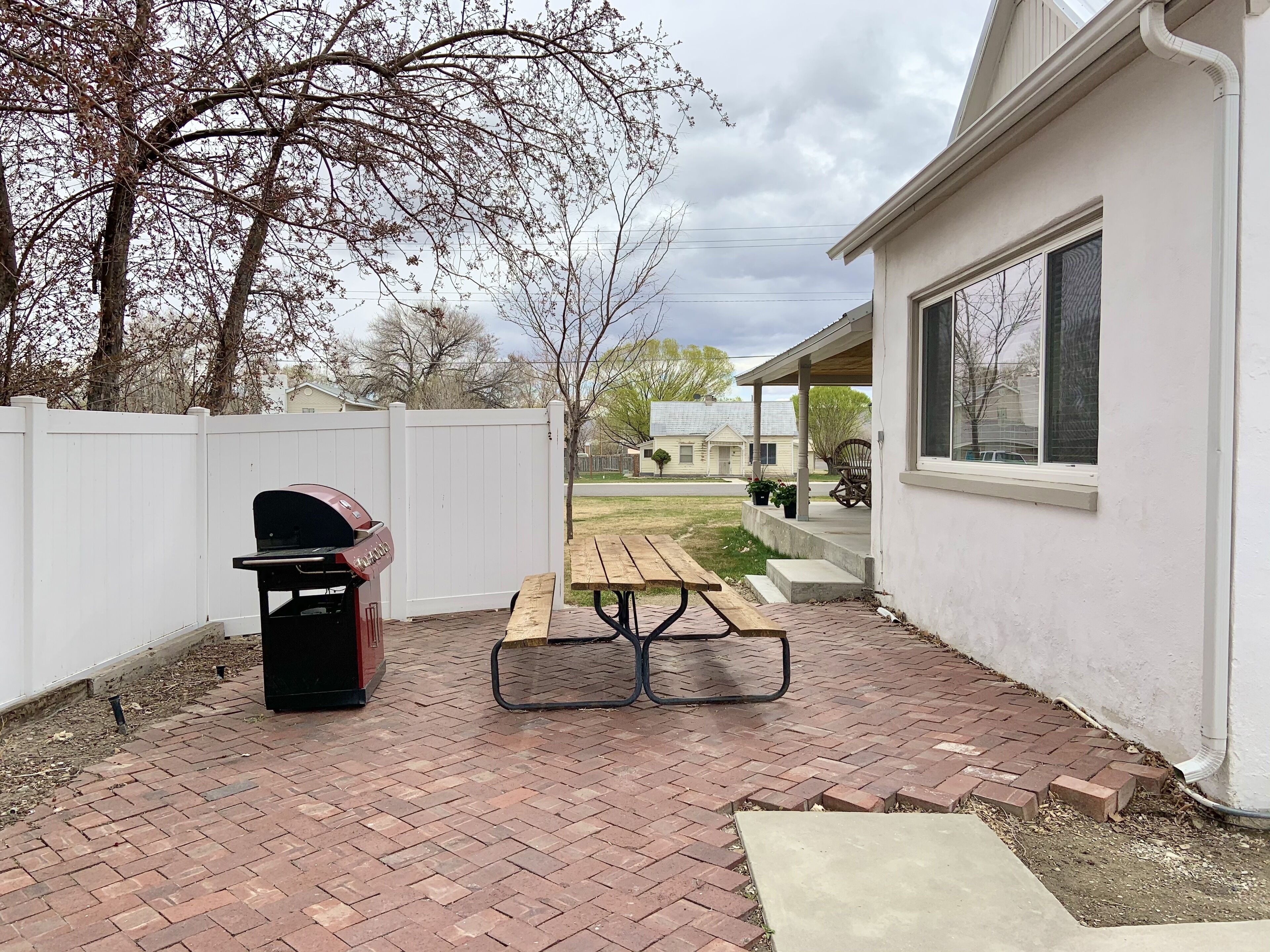Settle into our inviting home after a day of climbing or desert adventure in this unique area. Gather friends and family in our beautifully remodeled air-conditioned home. Enjoy outdoor dining on the veranda or cozy up to the fire pit overlooking the covered bridge and green fields of Castle Dale.