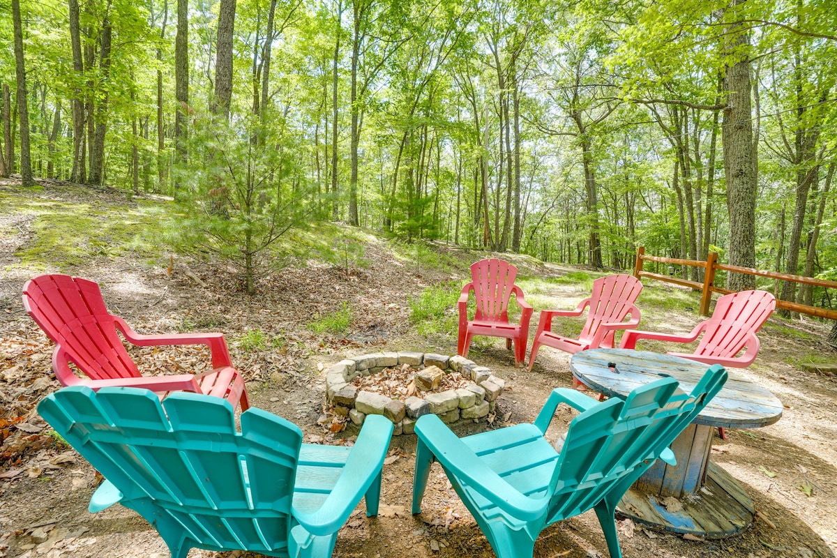 OUTDOOR AMENITIES: Outdoor seating & dining, fire pit (firewood provided), Adirondack chairs, national forest access on-site