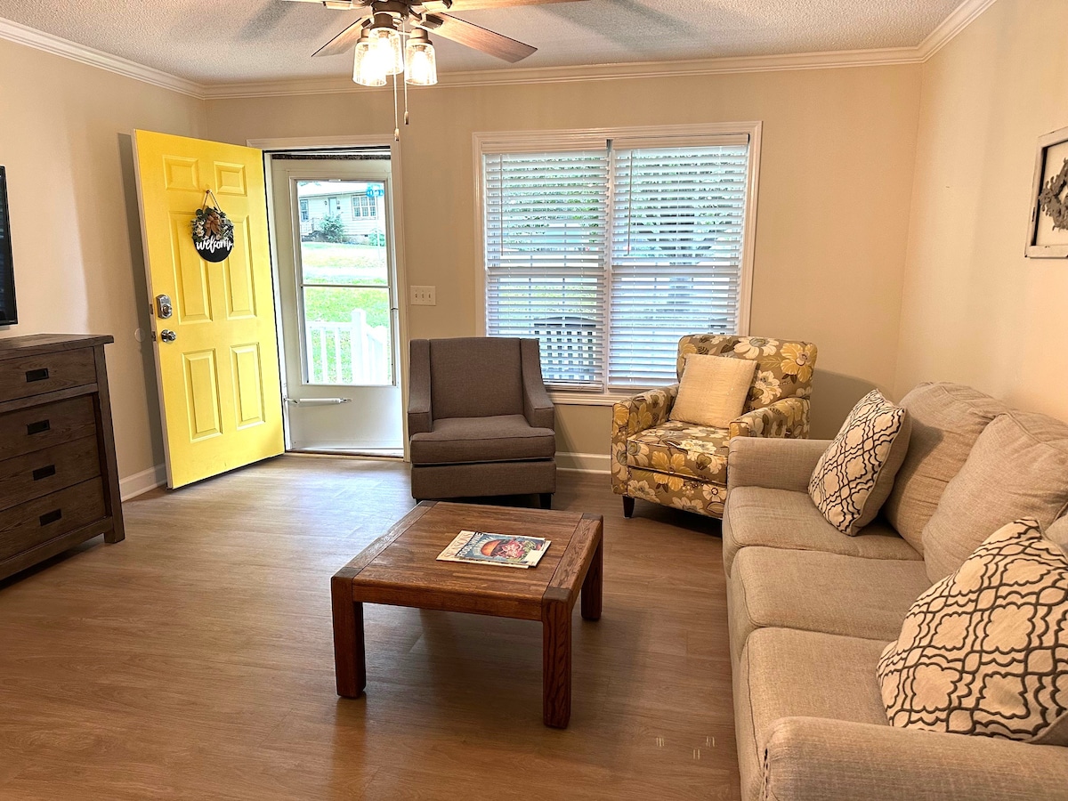 The main house has Smart Locks where all tenants will enjoy common space, laundry room and a great front porch seating area - this porch is the best spot in the house for watching storms! All apartments are rented as full units with two entrances/exits for safety and convenience.