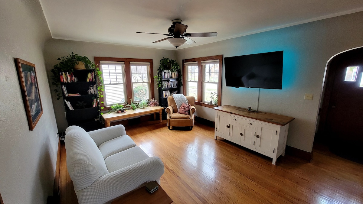 3 bedrooms, 2 bathrooms. All with gorgeous hardwood floors and original woodwork in this 1926 home. Plus a screened in porch with a couch!