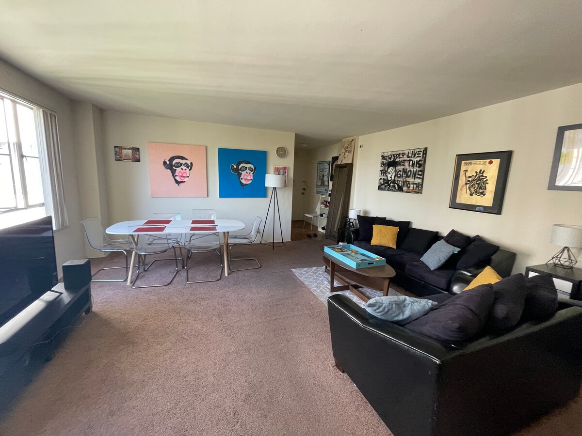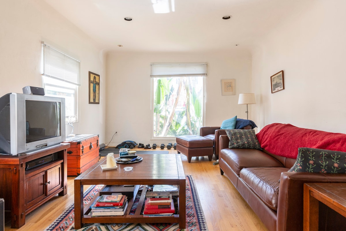 A NYC City home-like feel, a beautiful, safe scenic neighborhood. Clean 2 Story apartment with a Private Room for you & shared bathroom. Located near 10/101 fwy. 3 mins to SAG/Aftra buildings/ Museums & The Grove/Cedar's Siani Hospital. (Off of Wilshire & La Brea in a gated building).Walk to dining & markets Wilshire or Santa Monica Blvd. 20 minutes to Downtown L.A, 7 minutes to Beverly Hills, 15 minutes to Santa Monica, 10 minutes to West Hollywood, 25 minutes to Malibu.pets ok -bdrm remodeled