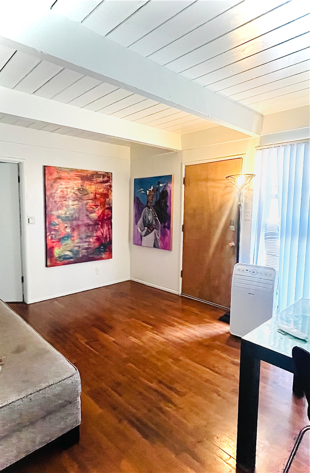 Guests will have a private bathroom in their bedroom. They can use living room, dining room, kitchen, patio, bbq. There is central AC and we can run it when it’s really warm, but it usually gets cool enough in LA to just use a fan at night.