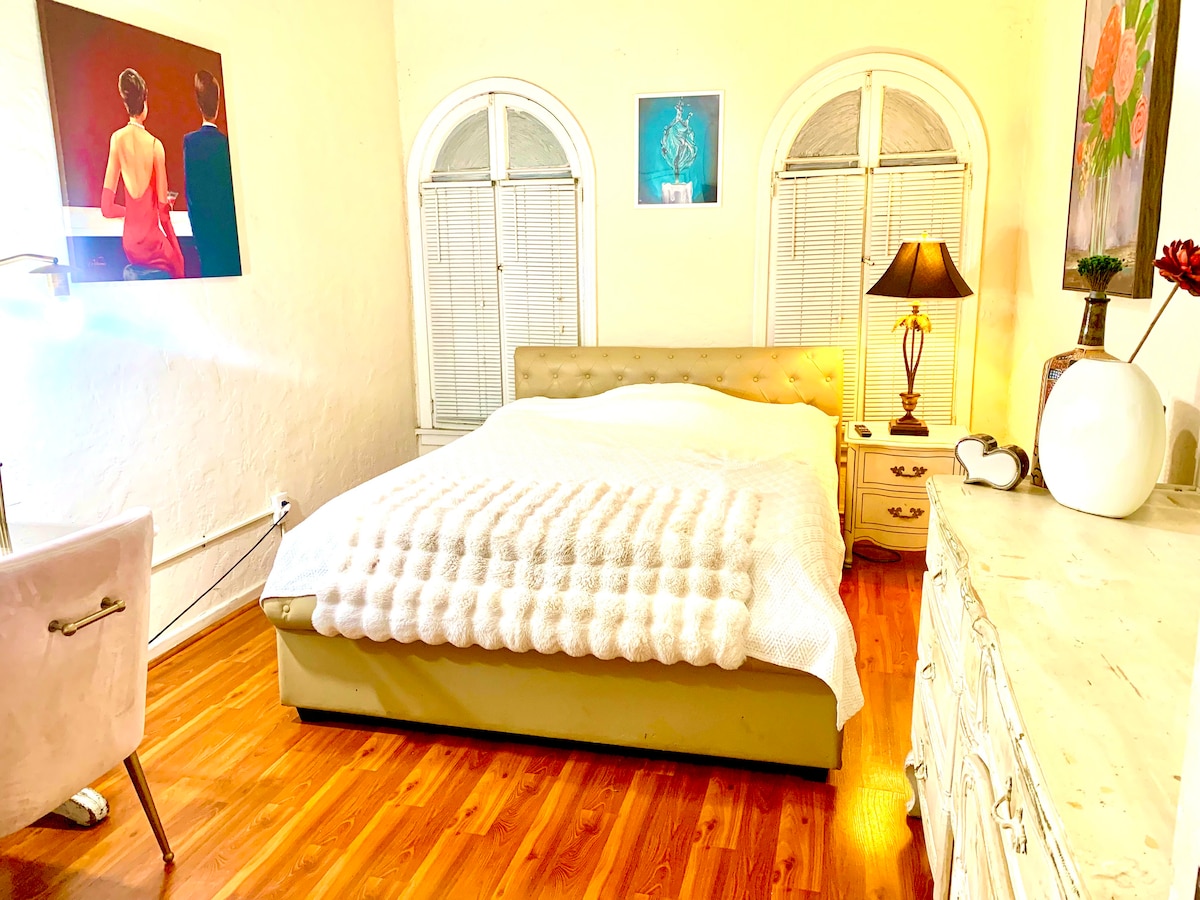 Newly remolded! Rare and beautiful mid city classic house!!! Located on the top floor of the duplex. You can enjoy a pleasant breakfast in this nice neighborhood. This place is great for solo traveler, working professionals, The home still maintains many of the original gorgeous Spanish and Art Deco design features including large artisanal leaded windows, tile floor for easy cleaning , and deco style tile.