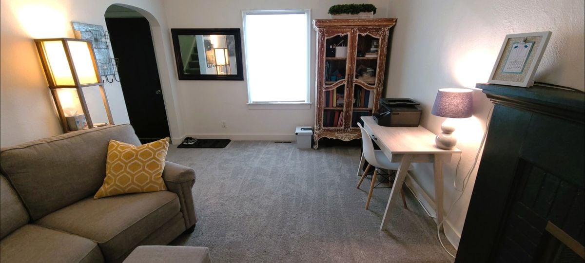 Our home is a 1320 square foot brick ranch with three bedrooms, and one bathroom. Its an open concept from the kitchen, through the dining area and ending at the living room. Two of the bedrooms are roughly 10x10 feet, and the largest bedroom is around 300 square feet with an additional 8x8 foot office accessed within the room.