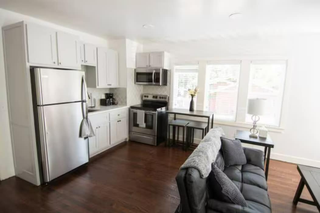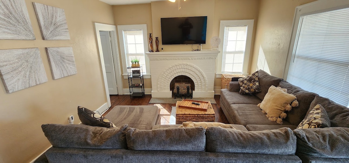 Enjoy your time in Oklahoma City's Vibrant Midtown District in our private one bed, one bath apartment home at The Shay ~ Suite #24 is on the 2nd floor (no elevator). The one bedroom is 475 square foot and has a large king size bed while the living room has a sleeper sofa which can comfortably sleep up to 4 guests. The kitchen is fully equipped with a coffee maker, silverware, utensils, range/oven, microwave, fridge and all essentials needed for cooking. The living room and bedroom both have 55 inch Smart TVs for you to login to your favorite streaming apps. We offer contactless check in, upon booking the door code will be programmed to the last 4 digits of the phone number associated with the booking account, so you can check in at your convenience. Our apartment homes are 100% private, however note there are shared hallways. The Shay has been recently remodeled in contemporary style with all of the amenities you would need for a short term or long-term stay.