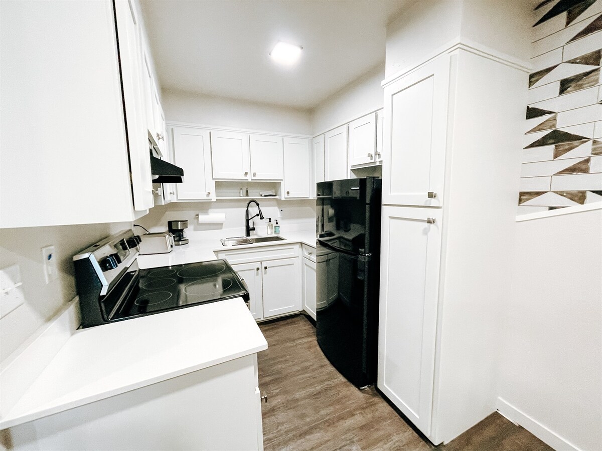 Enjoy your time in Oklahoma City's Vibrant Midtown District in our private one bed, one bath apartment home at The Shay ~ Suite #29 is on the 1st Floor. The one bedroom is 475SF and has a large king size bed while the living room has a twin bed sofa which can comfortably sleep an additional guest. The kitchen is fully equipped with a coffee maker, silverware, utensils, range/oven, microwave, fridge and all essentials needed for cooking. The living room and bedroom both have 55 inch Smart TVs for you to login to your favorite streaming apps. We offer contactless check in, upon booking the door code will be programmed and sent to you in the Welcome Email, so you can check in at your convenience. Our apartment homes are 100% private, however note there are shared hallways. The Shay has been recently remodeled in contemporary style with all of the amenities you would need for your stay at The Shay.