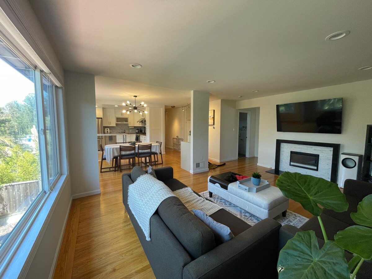 Completely redecorated Mid-Century Modern home in the much sought-after Midtown Terrace neighborhood. Gorgeous quiet home in great and friendly neighborhood only 5 minutes from shops and restaurants and well served by bus and transit options. Radiant subfloor heating throughout with a gas fireplace for those cooler San Francisco evenings. Large wind-protected garden for entertaining or just relaxing! Very fast internet and TVs and desks in every bedroom. Weekly cleaner included!