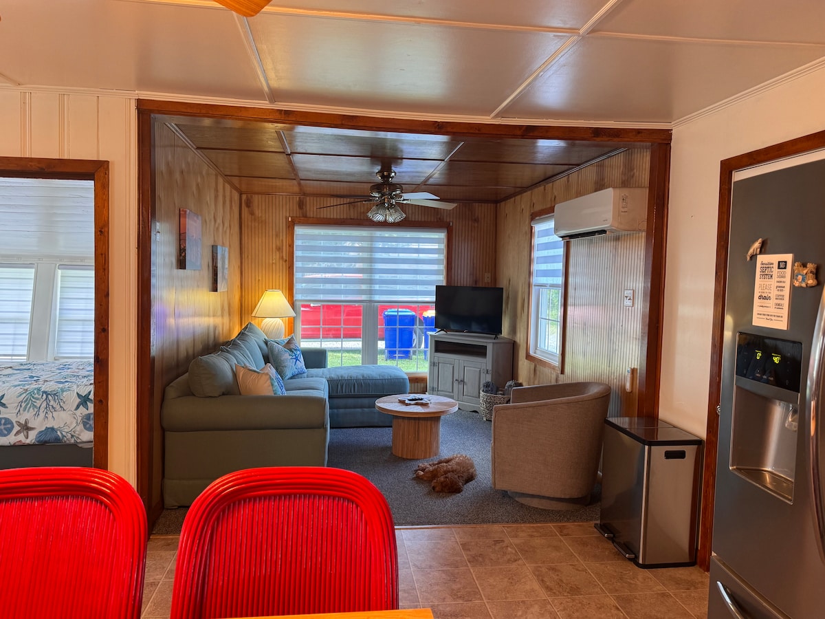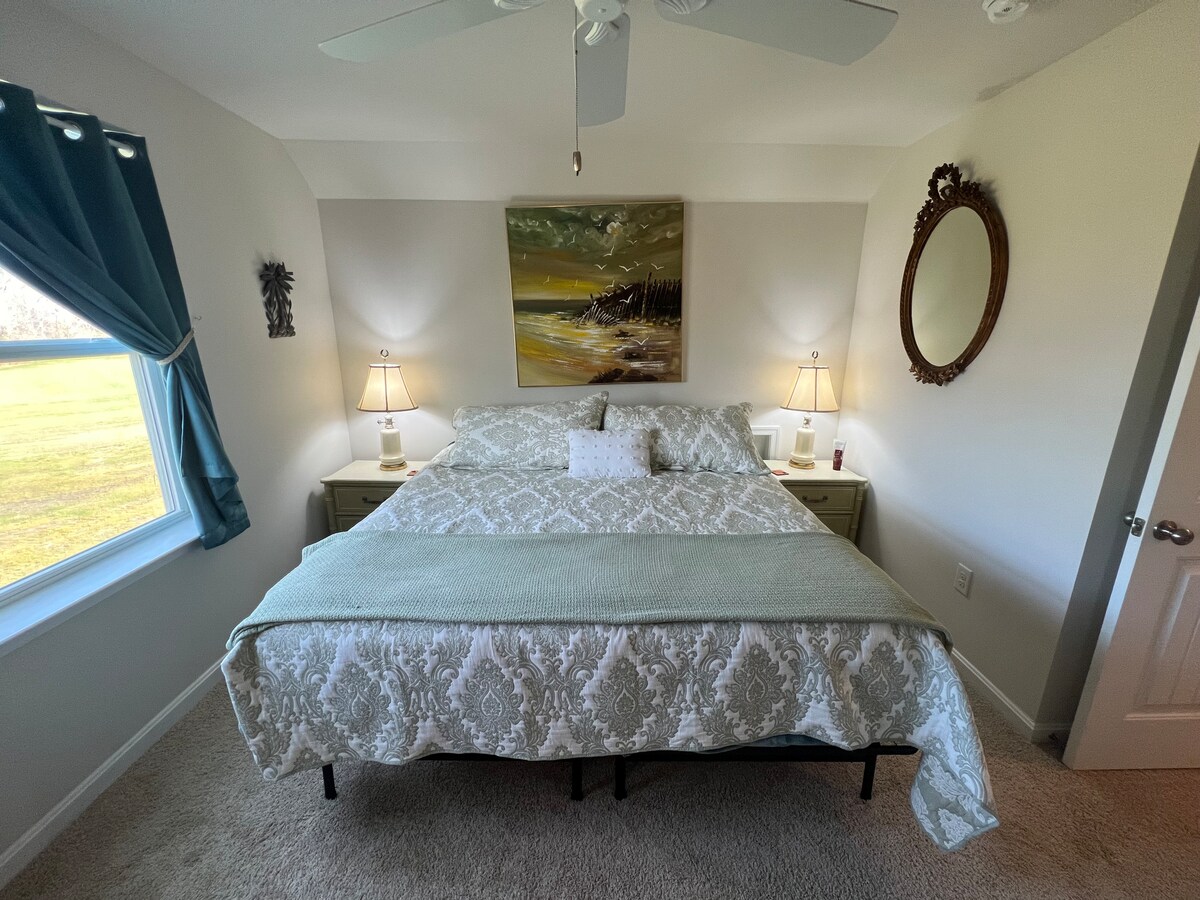 *Three private bedrooms (1 king bed, 1 queen, 1 double-twin trundle day bed (twin mattress top and bottom). Ceiling fan in each bedroom.