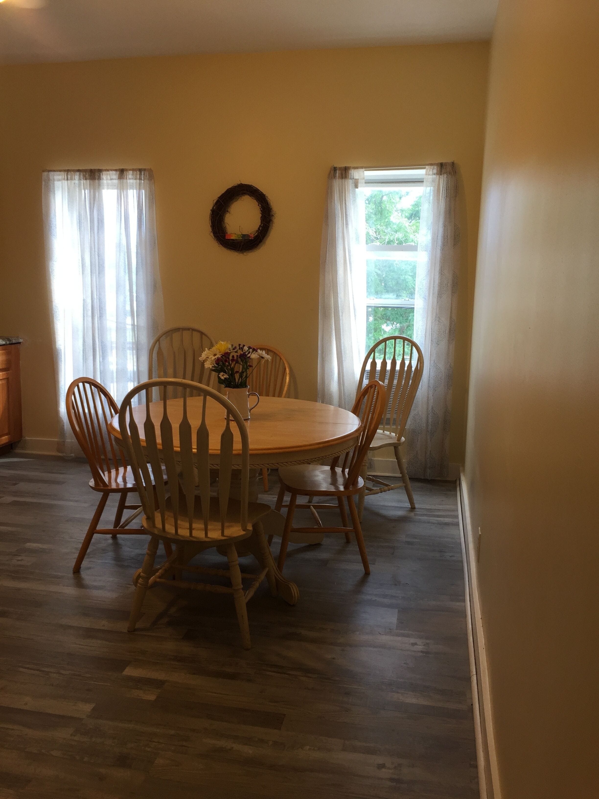 Beautifully kept modern home, sleeps 7-9, quiet rural setting, pool table, higher end kitchen, finished basement, extra living and rec rooms for kids. Quiet getaway in town but feels like the country. Cows can be seen from front yard! Not handicapped accessible; bedrooms on second floor.