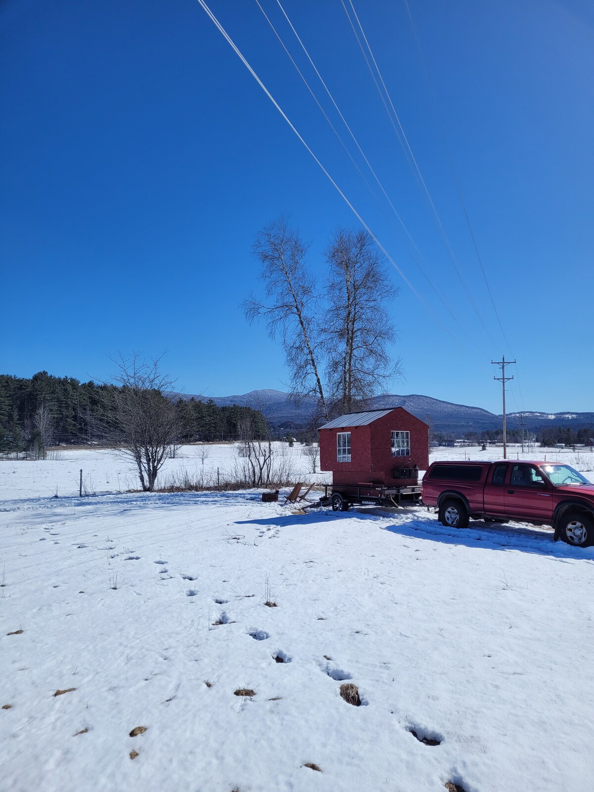 Book now for an unforgettable Vermont getaway. Tiny home living with all the necessary amenities including a smart TV, AC, heat, a kitchen with stovetop/oven, a microwave, coffee pot and tea kettle, dishes, cups, utensils and fridge/freezer. All linens and towels are provided and a comfortable shower awaits with shampoo/conditioner and a hairdryer. Enjoy meals at the dining nook or outside in the expansive field at the picnic table.