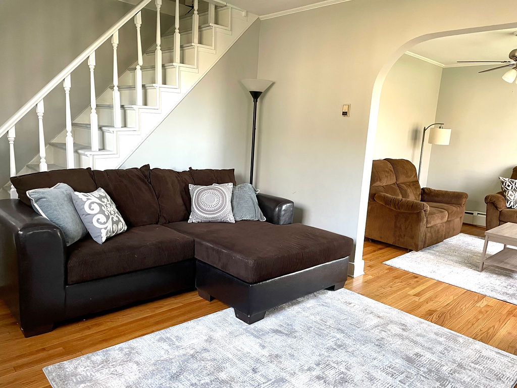 This is a two-family house with a second apartment on the top. You'll have your own parking space, separate entrance, and the front porch to enjoy.