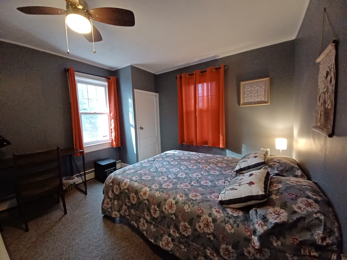 Self check-in. The whole first floor apartment is for your use. There are laundry machines in the basement which are shared. Weekends are the designated time for you to do laundry, but if that doesn't work, let us know. The front porch is for your exclusive use.