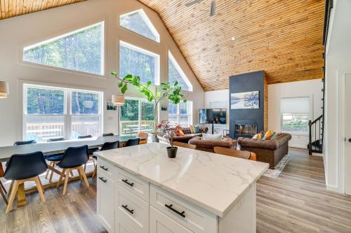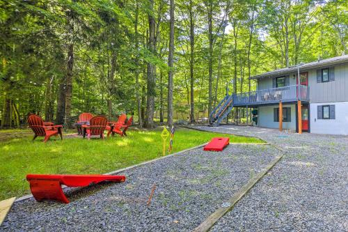 Immerse yourself in nature when you call this family-friendly Gouldsboro vacation rental your temporary home. The delightful 3-bedroom, 2-bath home comes together with modern decor, a full kitchen, Smart TVs in each bedroom, a gas fireplace, and a private yard with lush trees. Nestled in the Big Bass Lake community, this home offers year-round adventure! In winter, shred the slopes at Jack Frost or Camelback Mountain Resorts or snowshoe through Gouldsboro State Park.