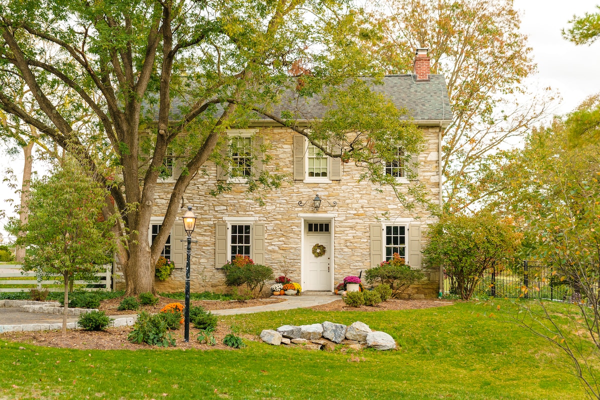 This 60+ Acre, 6 bedroom, 4.5-bath 1789 Fully Restored Retreat is ideally located across street from Grandview Winery. The Retreat sits on 60 acres of complete privacy on lush pastures & farmland in Lancaster County, PA. PRIVATE PICKLEBALL COURT, Hike on private trails, 2 Par 3 golf holes and putting green, hot tub, kayak, basketball, fish/catch large mouth bass, enjoy the fire pits at night, enjoy the sunsets, or hike the trails around the farm or enjoy just sitting by the water fountain on the dock. Close to 5,800 square feet (2 houses) provide plenty of room for your guests to spread out and relax.