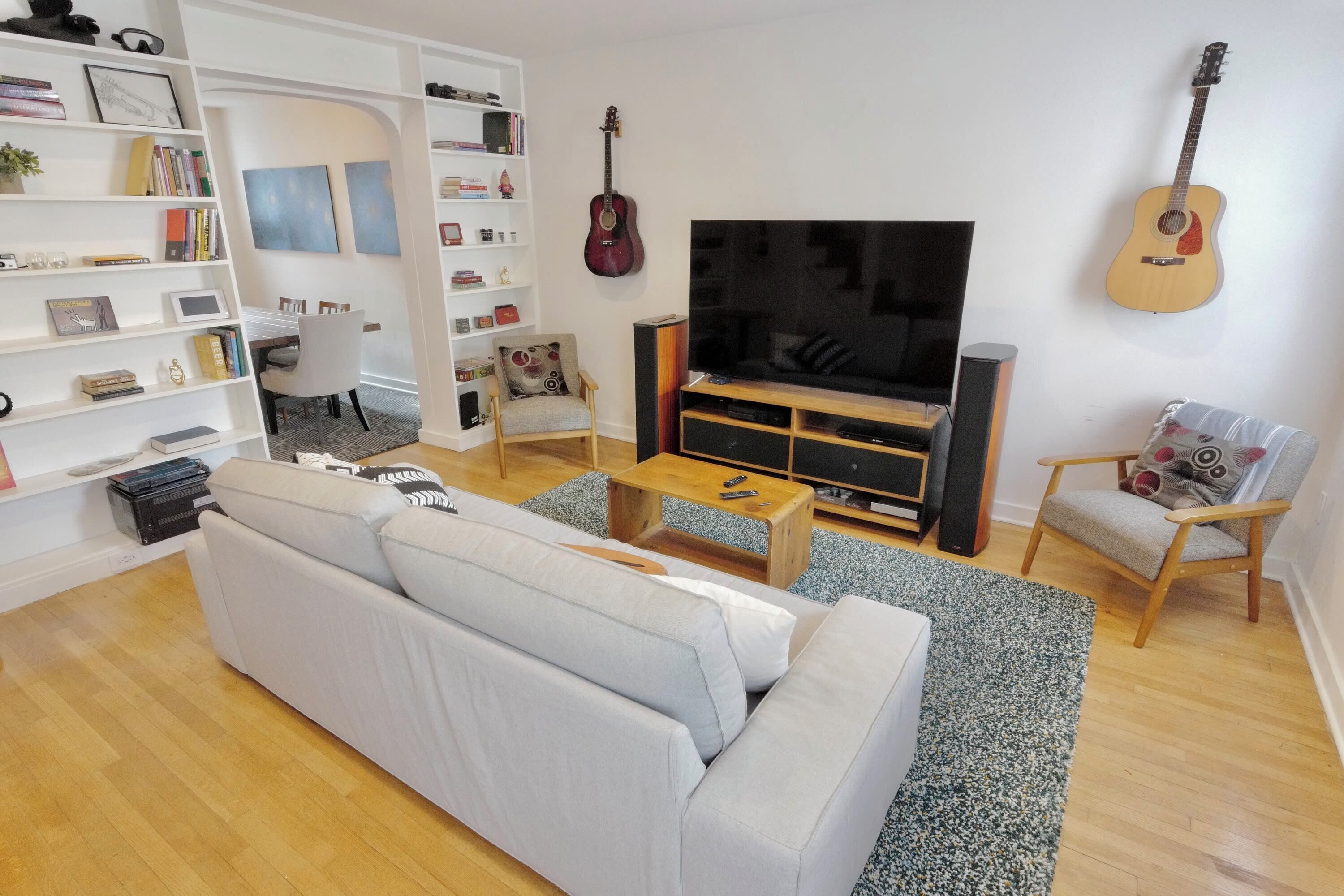 Professionally-cleaned, 1BR apartment in the historic neighborhood of Mt Pleasant, just steps to the National Zoo. Ideal for traveling families, our home sleeps up to 5 people (king bed, twin daybed with trundle and pack n play). Includes well-stocked kitchen for cooking and a free, private washer and dryer. Televisions with cable in the living room and bedroom and high speed internet included.