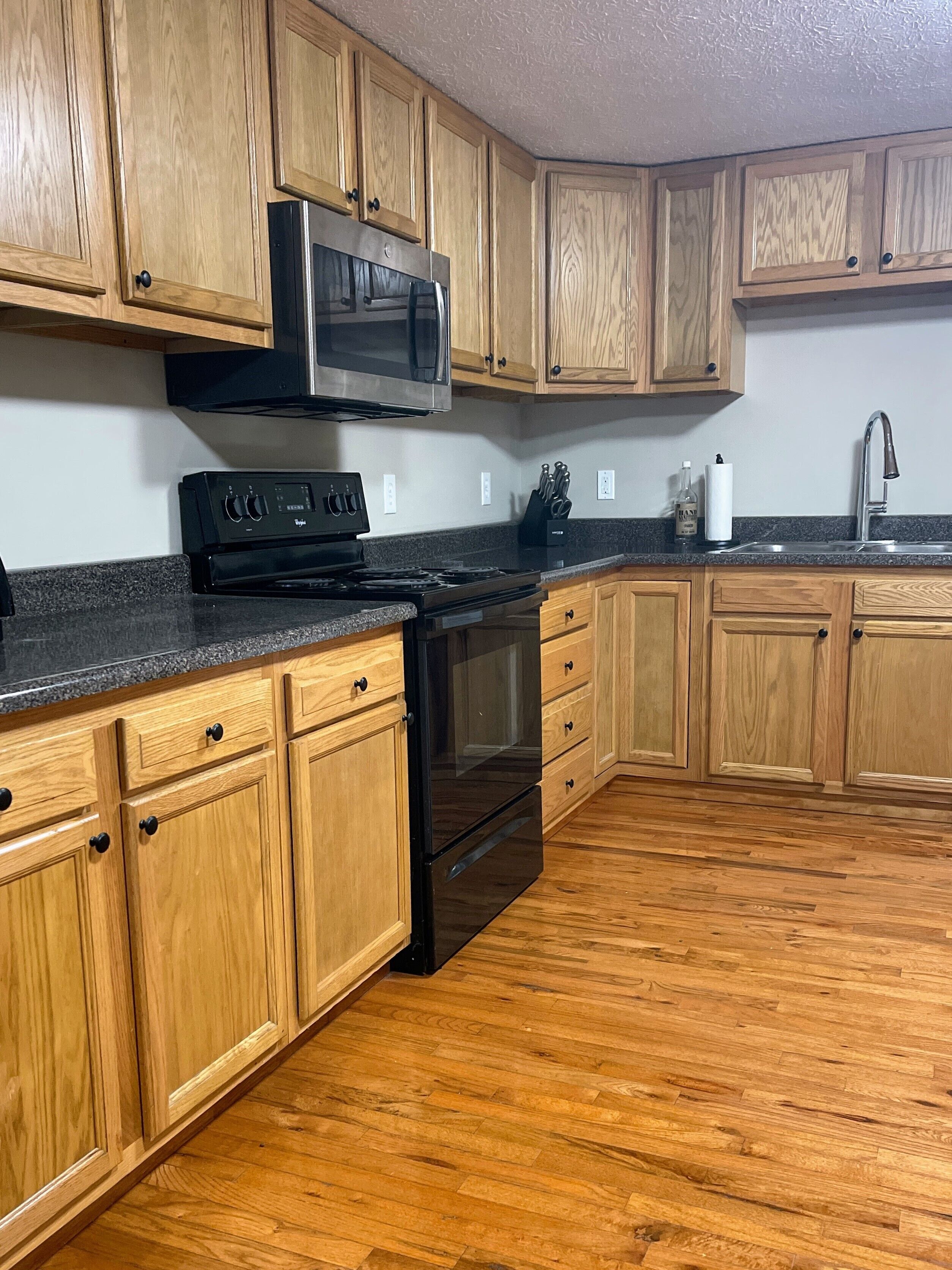 KITCHEN: Cooking basics, fridge, stove/oven, microwave, dishwasher, coffee maker, toaster oven, trash bags/paper towels