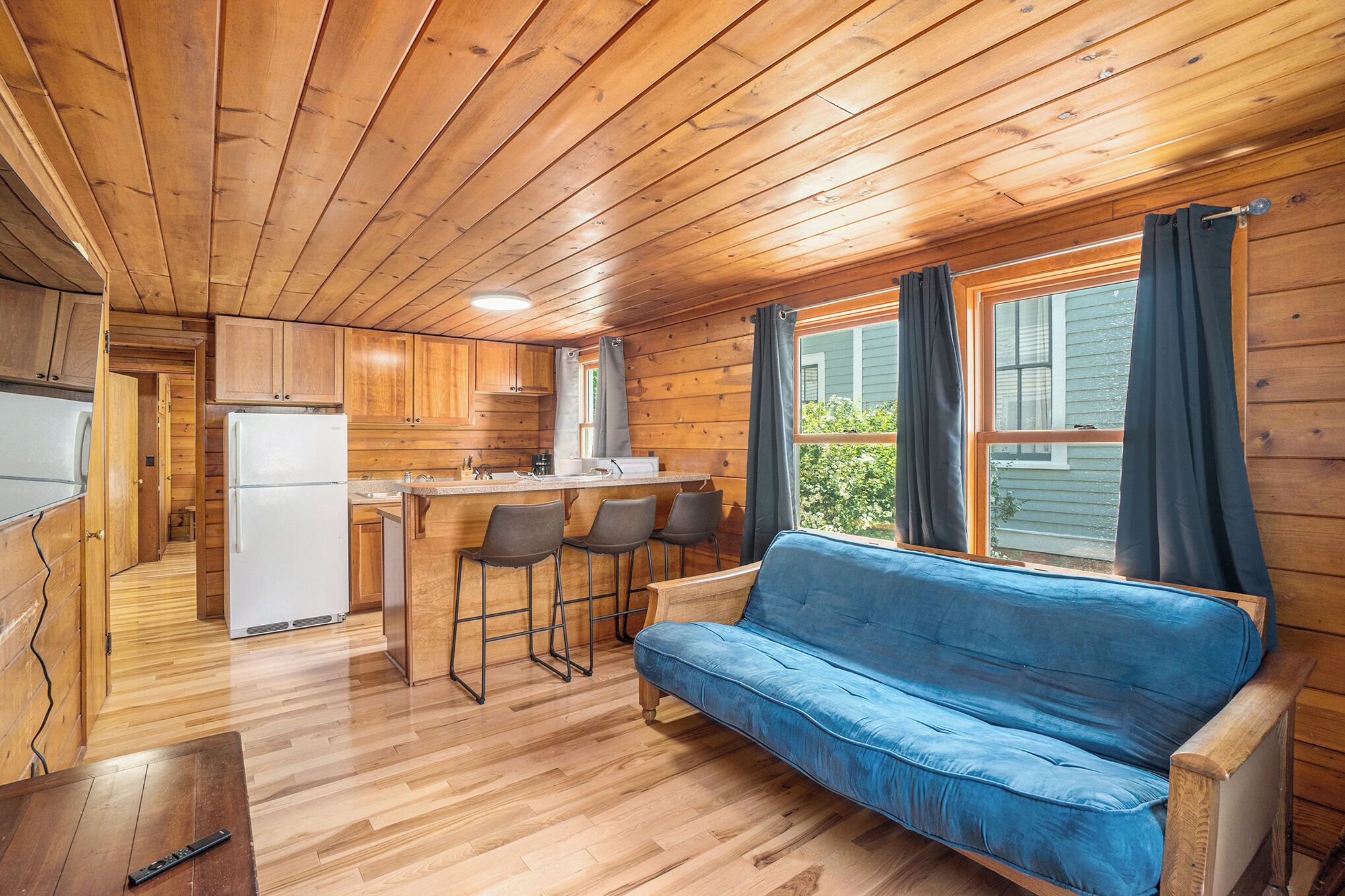 The Huckleberry Inn is thoughtfully designed with earthy tones, natural textures and cozy touches that create a warm and inviting atmosphere. Whether you're curling up with a book, sipping on some morning coffee, or soaking up the afternoon sun; this space invites you to unwind!