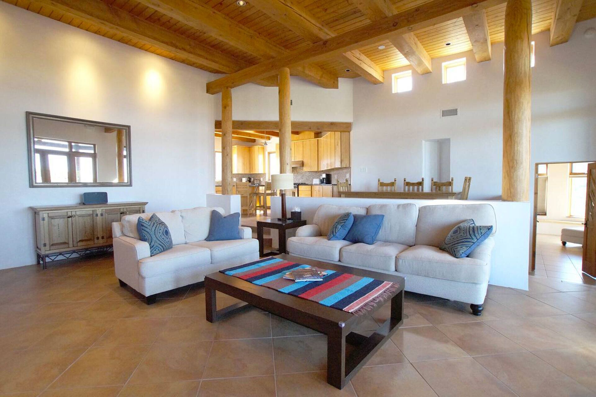 - "We had an excellent experience at this short term rental home. We all loved the house, not only because it delivered on what is promised in the listing, but because of the magnificence of the property… to say the home is well-appointed is an understatement; the location is paradise! Secluded, quiet and scenic. I’m a birder, and I identified 8 different types while sitting in the back patio. The house is spacious. Two families stayed on the property, but many more family members joined us for dinner at the house during our stay. The house is huge, and it very comfortably accommodated all of us. We were in town for our annual pilgrimage walk to El Santuario de Chimayó, and the house was only a few minutes from our rendezvous point. Everything was perfect, and we have raved about the house incessantly since we left.Finally, the owners are a dream to work with, and the rules of the house are simple and reasonable. Absolutely no complaints from anyone on the trip. Book with absolute confidence."