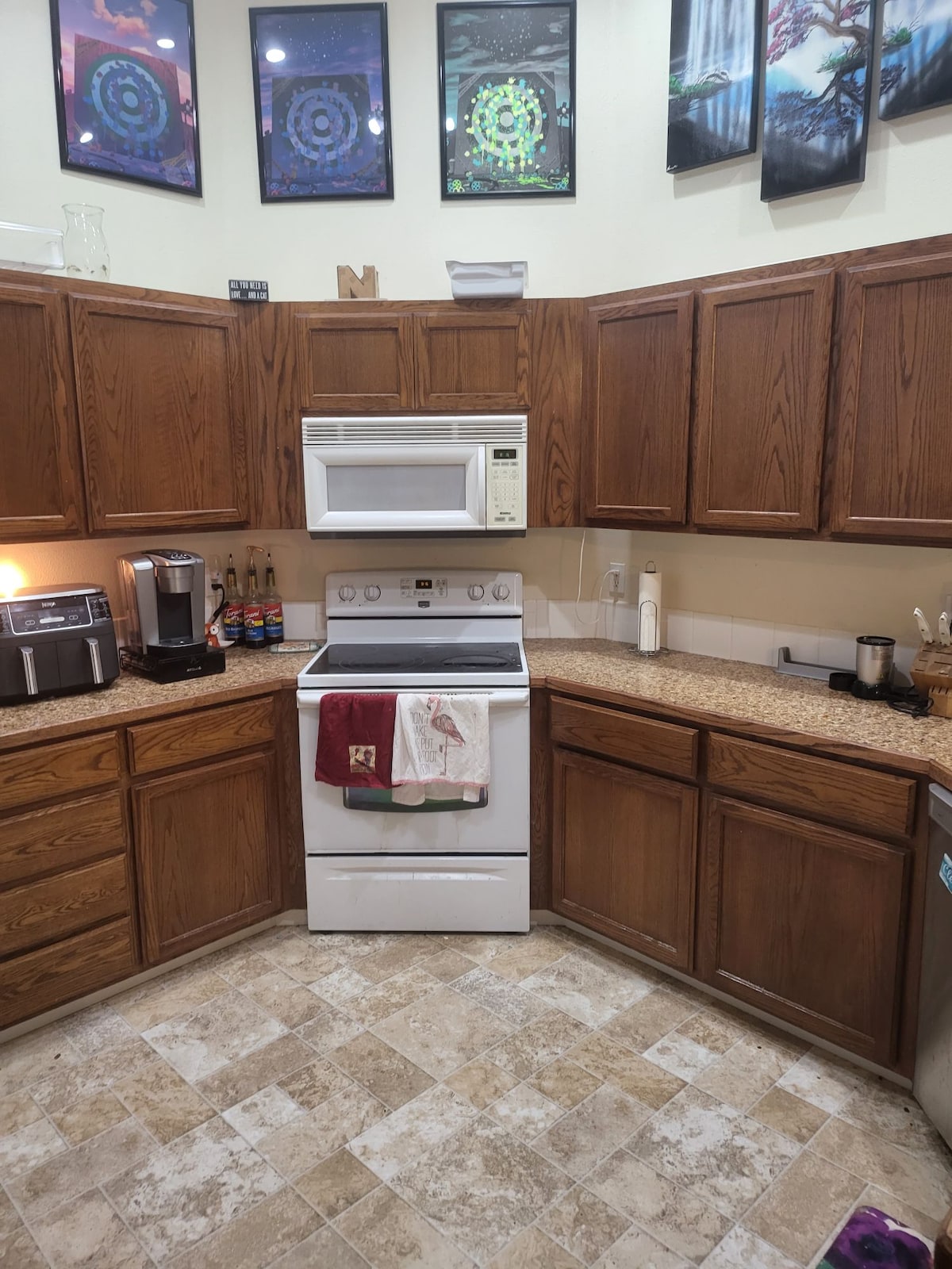 - Refrigerator, stove/oven, countertop dishwasher, microwave