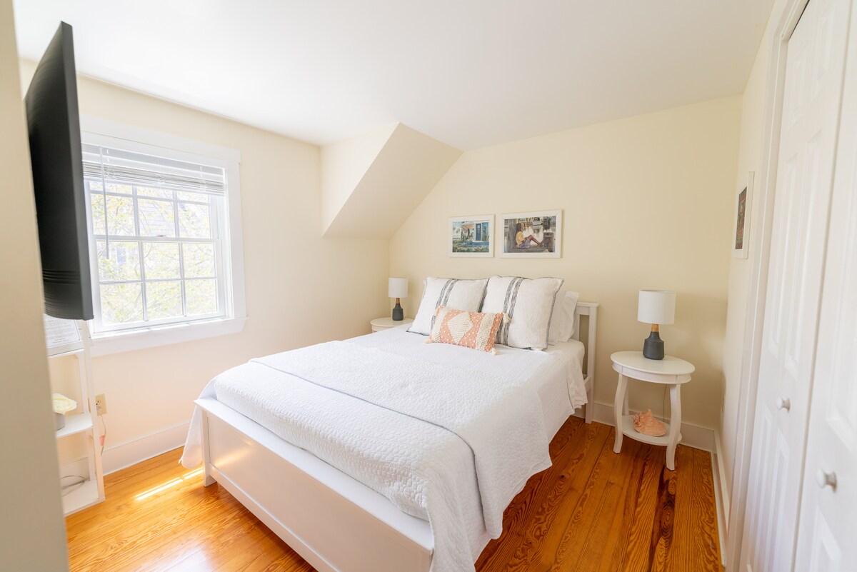 Newly renovated and tastefully furnished in true Nantucket fashion, this room is the perfect choice for couples, friends, family, or business travelers. The room is located on the top floor and has a back guest entrance and outdoor seating (two more guestrooms located on the same floor).