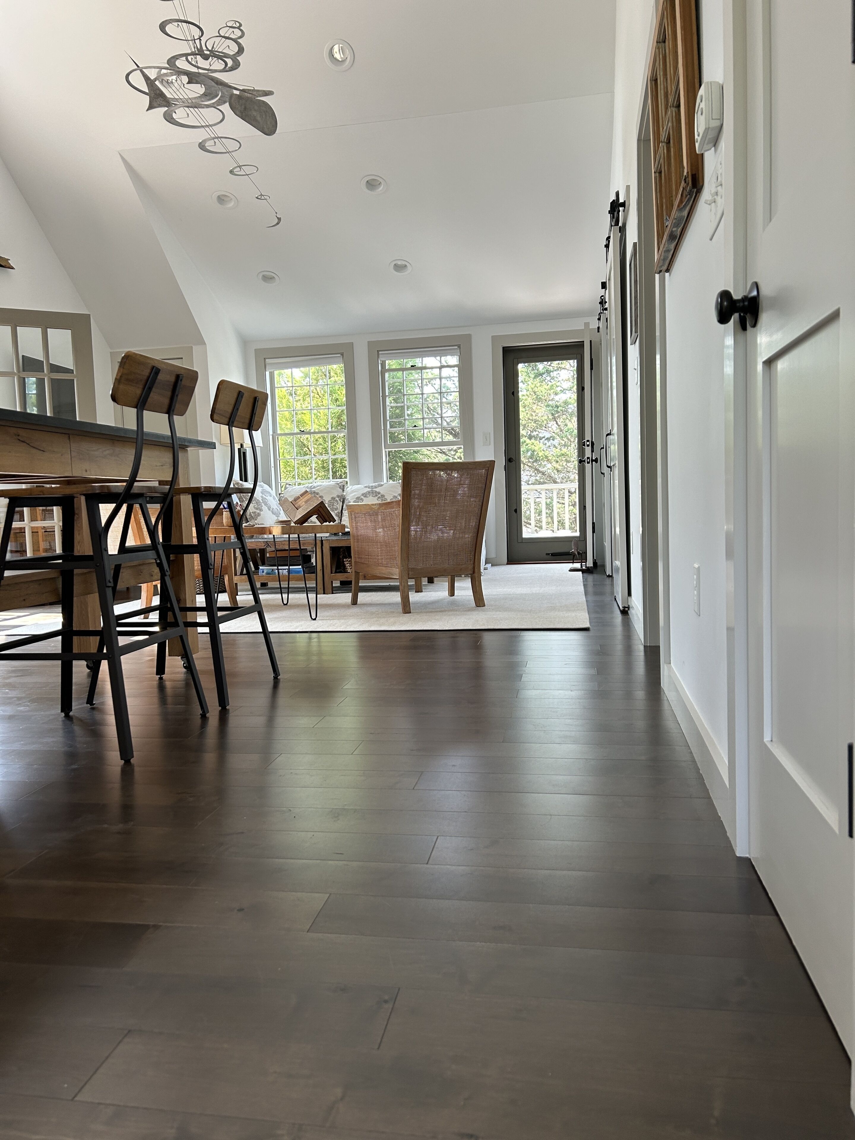 Wooden floors, queen bed, towels, hairdryer, apothecary shampoo, body wash, central air, wifi, 50” TV, and free Netflix.