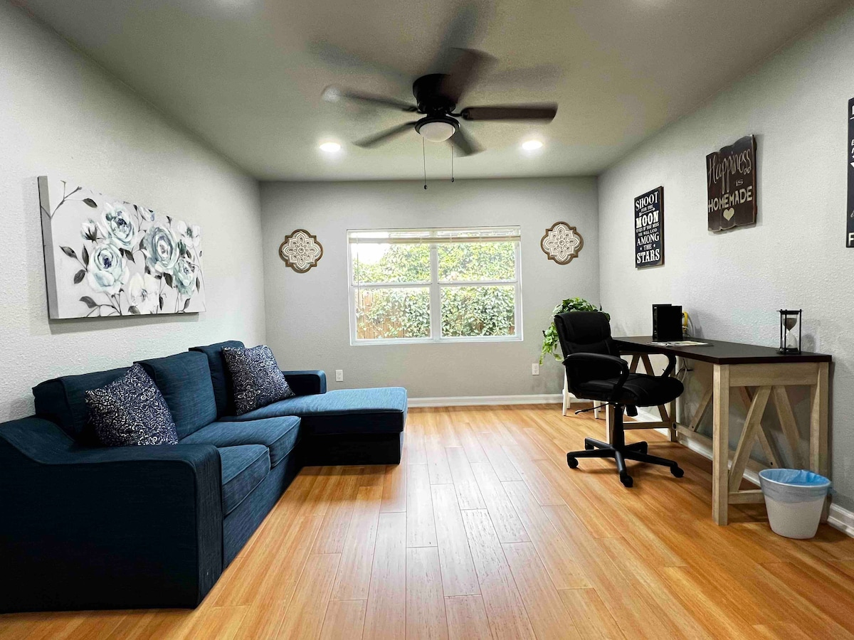 - "This place was amazing for my family size! Everyone was comfortable and slept well. Showers were hot. It's a cute little place. Checkout could be a bit later but other than that perfect!!" - "Definitely do not recommend this stay if traveling with a family. For starters there is no scenic view. The home overlooks an alley way filled with mattresses and homeless people. Parking is extremely limited and not paved. Once we entered the home we were still trying to look for the positive but found a futon that was completely worn down to the metal, bar stools that were nearly broken and dirty towels in the washer. We made due after a long day at theme parks just to find out 3 days later that we were being charged $100 for a minor stain on a bed sheet that we don’t even know if it was there to begin with! Beware booking with these owners!"