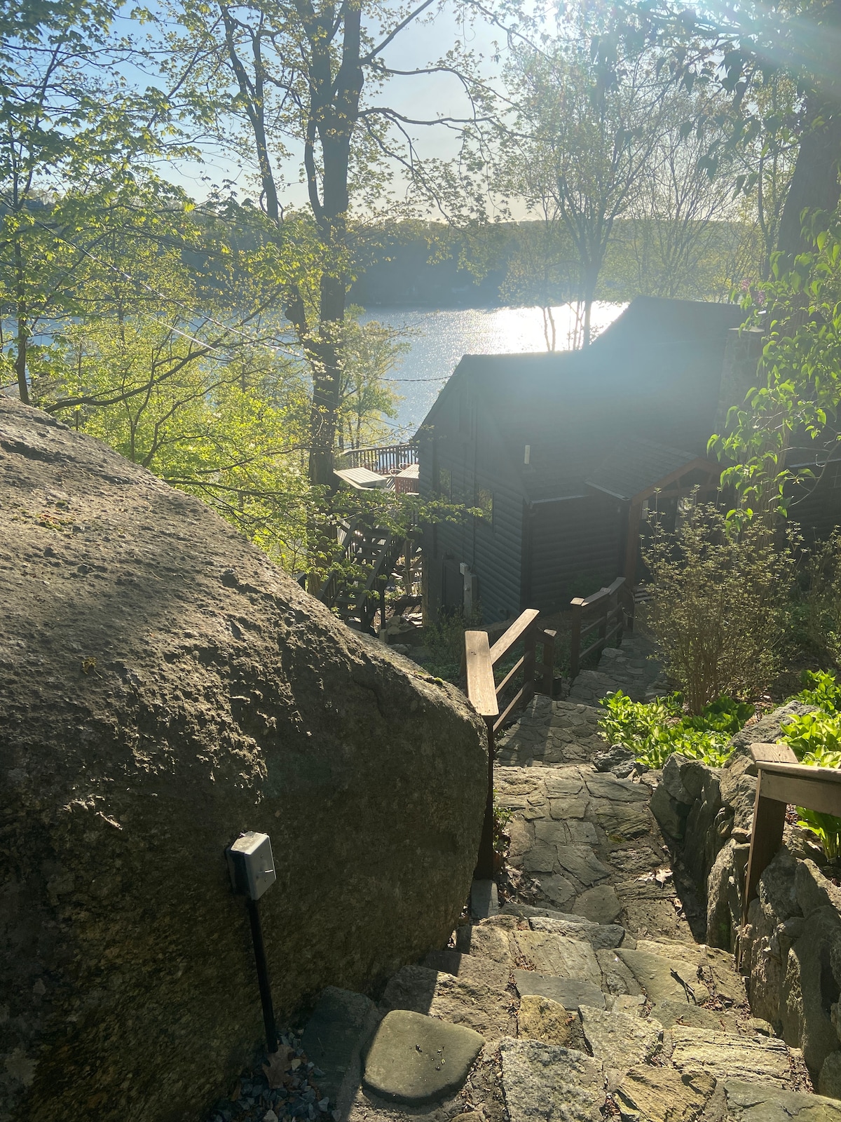 Our manicured property leads you to the private deck with a Solo Stiove, Adirondack chairs and a serene sitting area overlooking a very quiet part of the lake. The Solo Stove is a great way to end your day on Candlewood Lake.