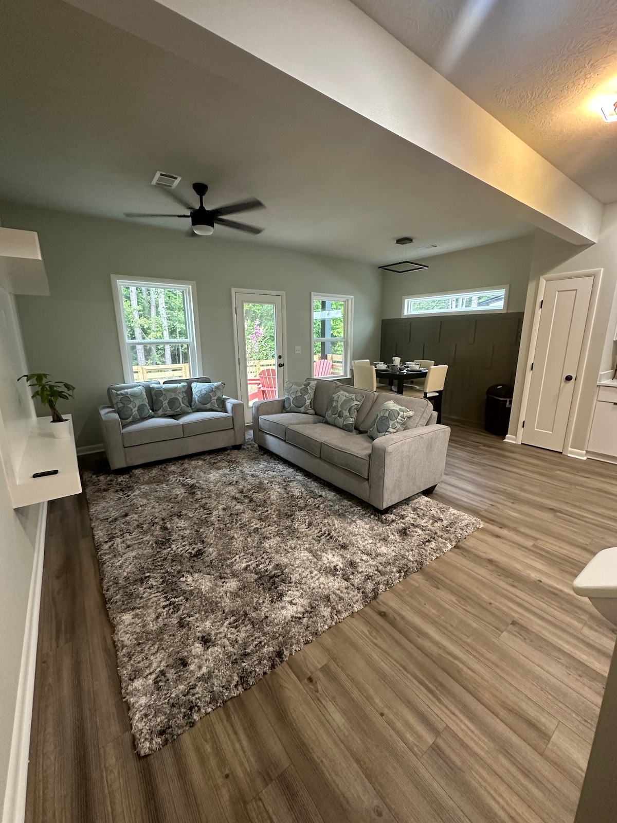 Tucked away from the road and surrounded by majestic oak trees, our home offers a peaceful haven where you may even spot graceful deer as they wander through, drawn to the calm of the mornings and evenings.