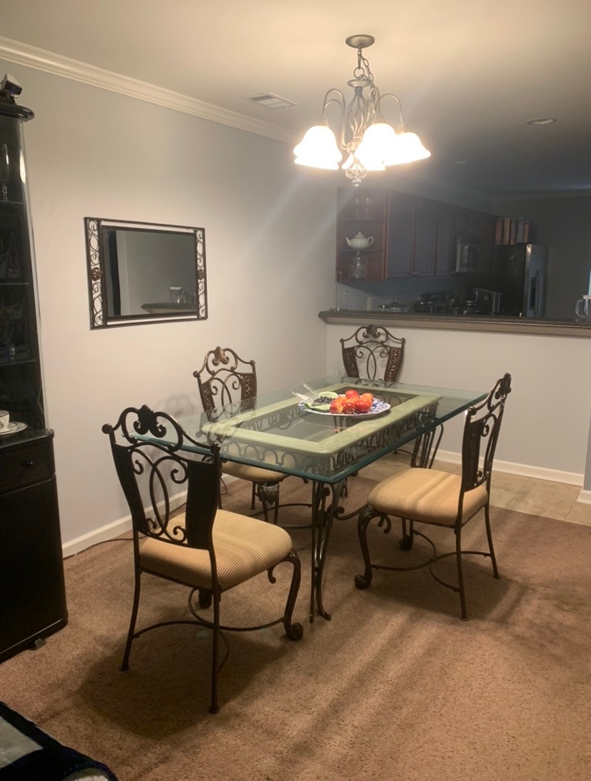 Large open living area with gas fireplace and comfortable seating. The formal dining room seats 8-10 , the breakfast room seats 2 with 2 more at the bar. One story split floor plan with sun room overlooking pool. This Floridian style house is in a quiet neighborhood with tennis courts, walking trails and only 5 miles from downtown Augusta and 8 miles from Augusta National. This is the best location to commute to the Ironman competition. There are 3 queen size beds and 1 king size bed with one guest room having private bath.