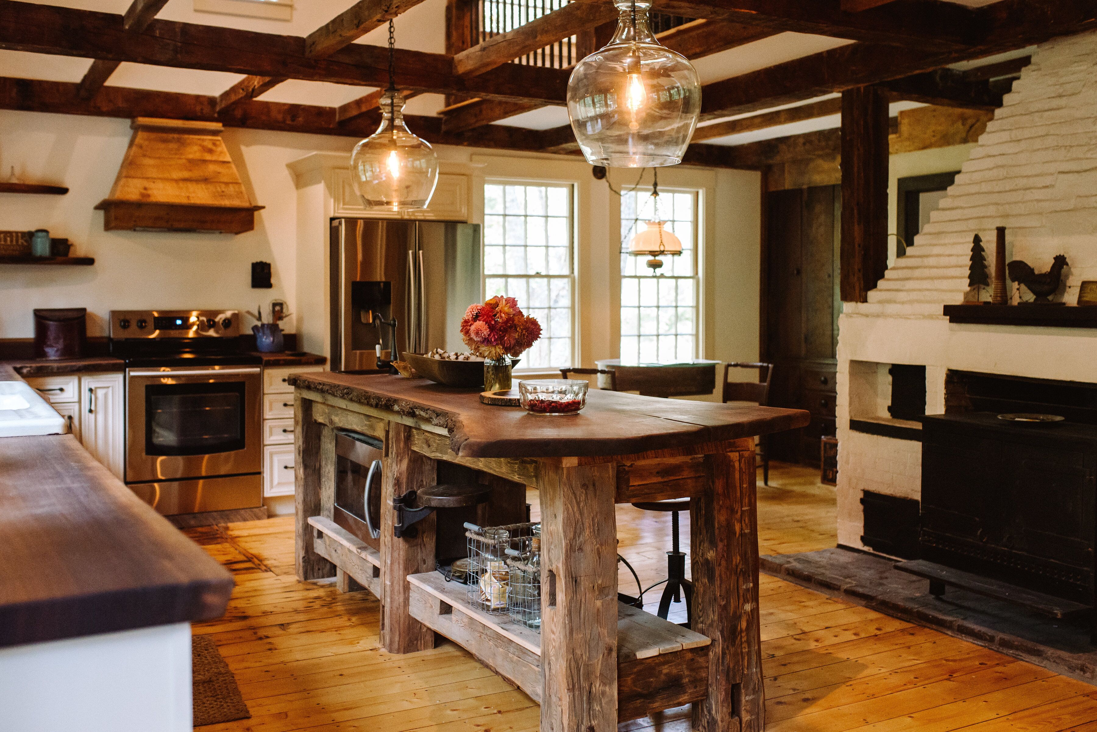 This antique farmhouse has been restored for your enjoyment! Includes four bedrooms, a large open loft bedroom space, 2 full baths, living room and large family room. The Kitchen boasts a custom black walnut counter tops, a large custom island, new stainless appliances and breakfast nook. Step out to the dining room surrounded in windows to sit at the custom black walnut tables. This is your home away from home!