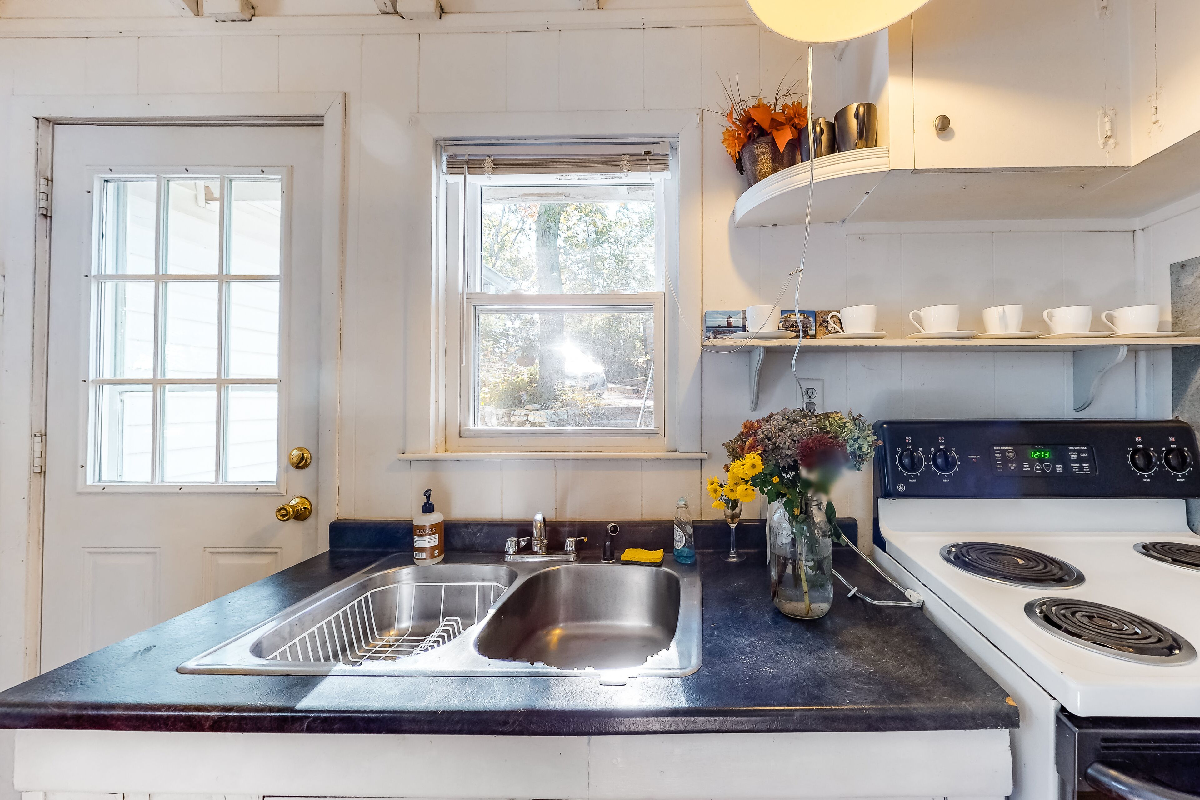 There is a well stocked kitchen and the new bathroom is great for a steamy shower.