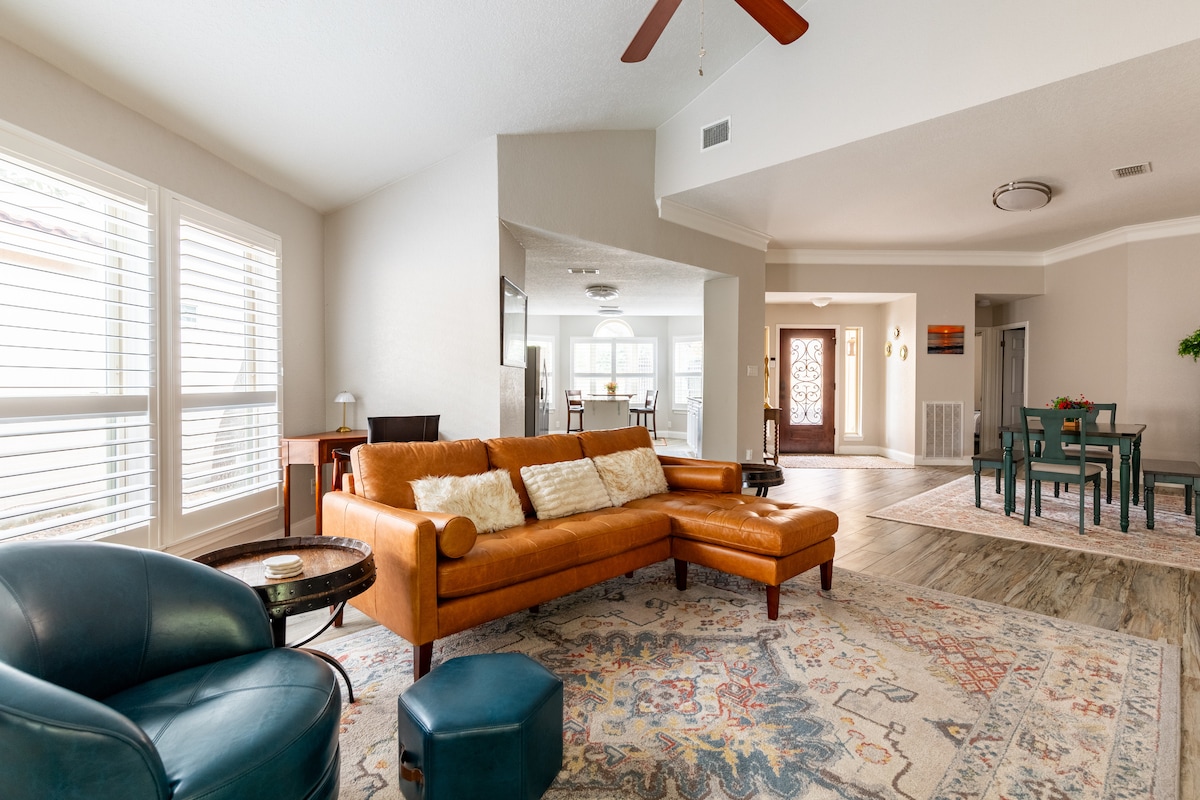 Luxury Accommodations: Four spacious 🛌 king bedrooms provide ultimate comfort (two rooms with TVs 📺), and the game room features two queen raised beds for additional guests. Pack n Play stored for you in the main closet if you're bringing the little one 👶. All new furniture throughout the house designed to help you relax and enjoy every space on your own or gathered as a group.