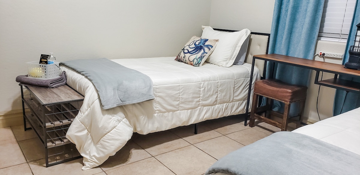 Welcome to our clean and friendly 3-bedroom, 2-bathroom shared home, offering a quiet and affordable dorm-style living experience. This listing is for a twin bed in a shared room—perfect for travelers, students, or anyone seeking a budget-friendly, comfortable stay.