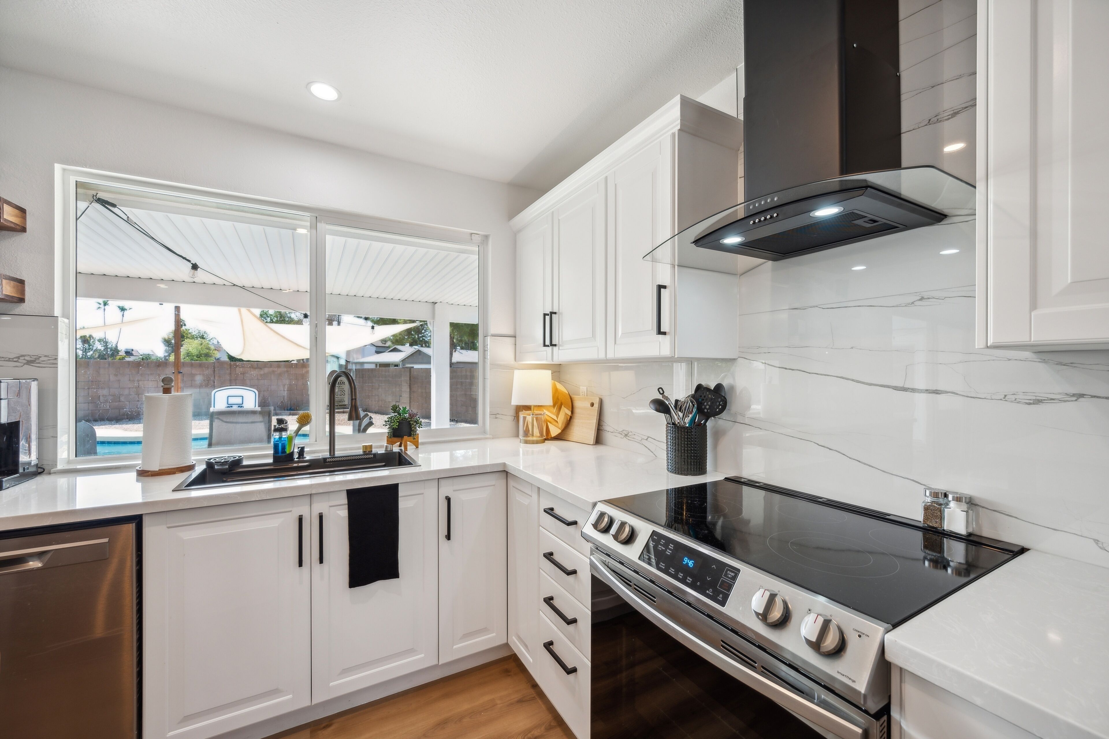 We love our house and hope you enjoy it! The updated kitchen has subway tiles 15' high & large windows for natural light.